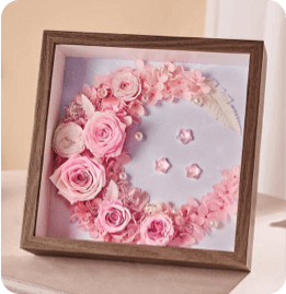 蝶恋花永生花相框-少女粉·永生花相框