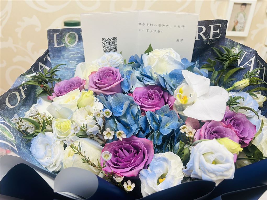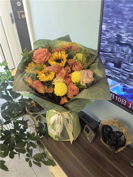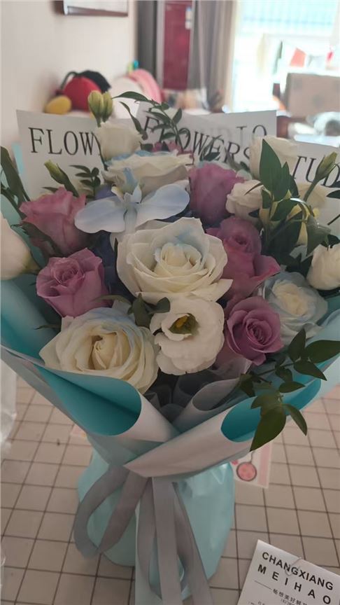 寒冷的冬日,一捧鲜花让人眼前一亮,带给人温暖和美好。鲜花很漂亮,和网上的图片一样,物流送货也很及时。总之,是一次很开心的订购体验。