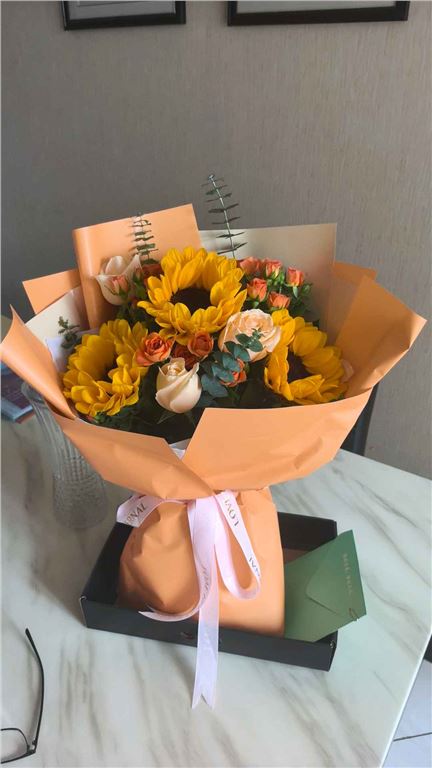 说实话,和以前一样,花还可以,但和照片宣传的还是有一丢丢差距,希望能改进。送的也准时,约的是10:30前,10:25送到的,但我备注的最好能在9:00前送达,商家应该没看到;贺卡的字比以前写的好看多了,很好,备注的内容应该看到了。希望能继续改进,不枉付我们这些忠实顾客的信任。