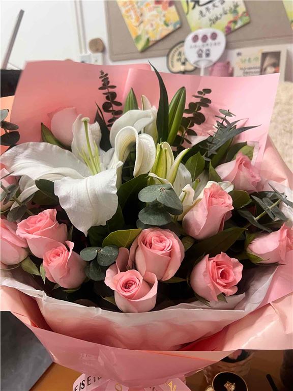 首先感謝送花的時間十分準確 花也十分新鮮 收花者絕對滿意 顏色預設計十分恰當沒有違和感 期待有更加多更出色的韓式插花法可以供給我們選擇 十分感謝