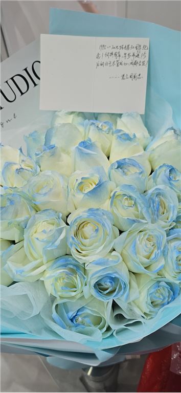 花真的好好看,她很喜欢,和店里的一样哩。