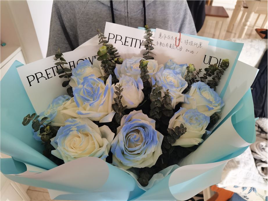 花花很漂亮,女朋友感动哭了,送花小哥也很给力