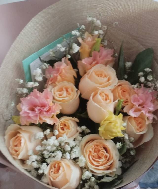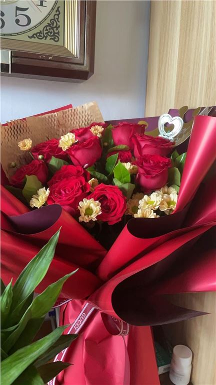 花不错,很好看,但贺卡的文字笔迹有待提高哈😂