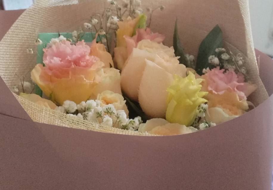 花束搭配好看,颜色温馨,花朵也很新鲜,非常满意