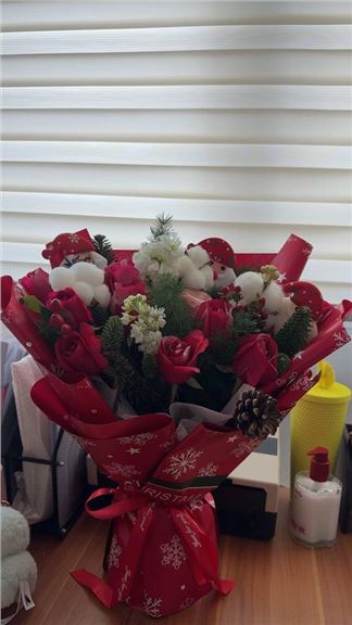 虽然在疫情防护中,送花帅哥服务态度非常好!花也很鲜艳。