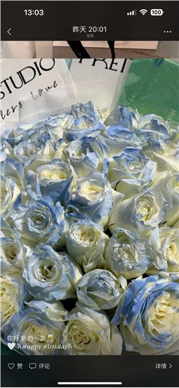 当时花店老板打电话给爱人,爱人问谁送的,花点老板说送花的人想给你个惊喜,收到花就知道了。太感谢老板了,为你点赞。