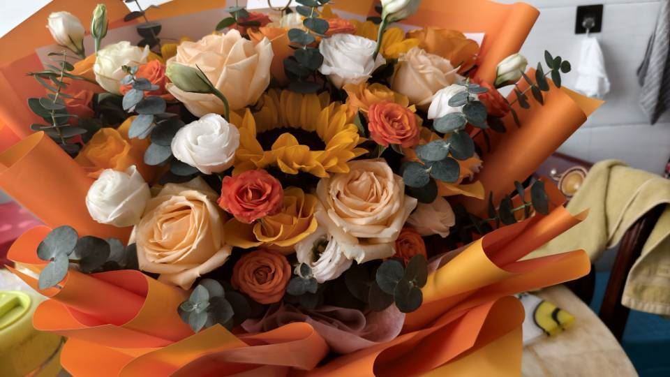 花很新鲜也很漂亮,我朋友非常喜欢,物流快也准时,很不错