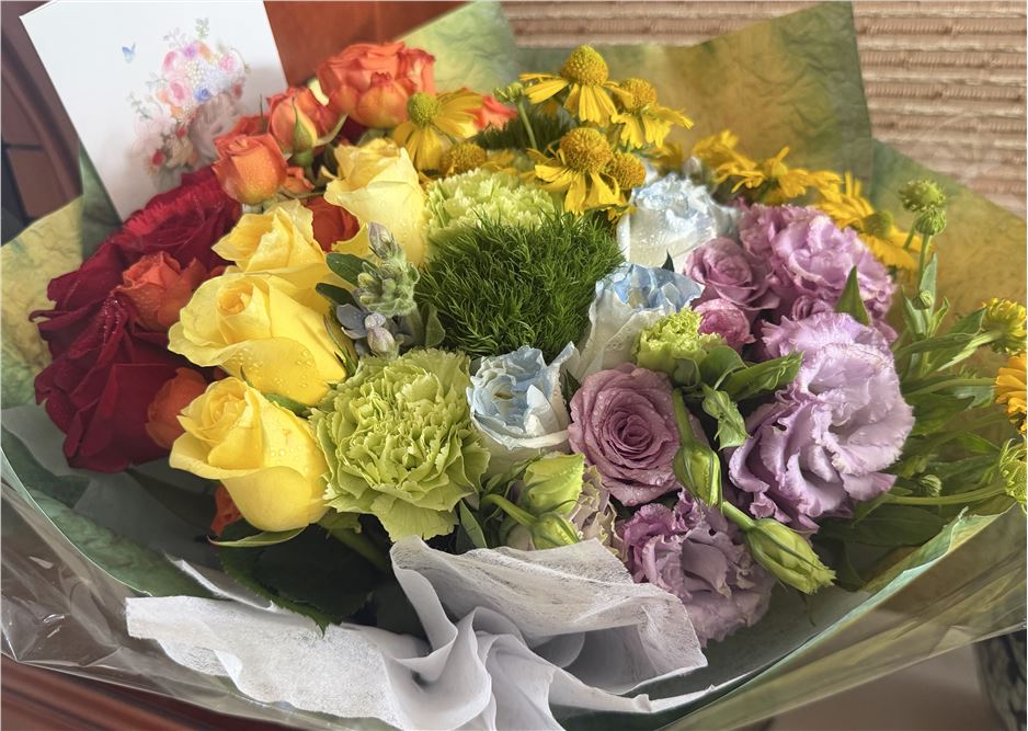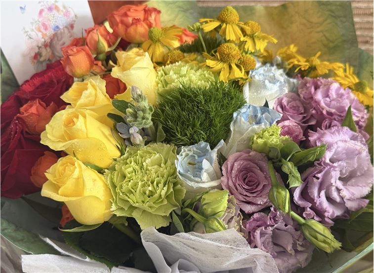 按时送达,花很新鲜,配色和选材与图片一致,卡片也是打印的字体,长辈们都很喜欢,非常好👍