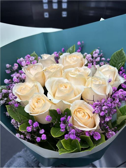 卡罗拉红玫瑰11枝,满天星0.3扎,栀子叶0.5扎