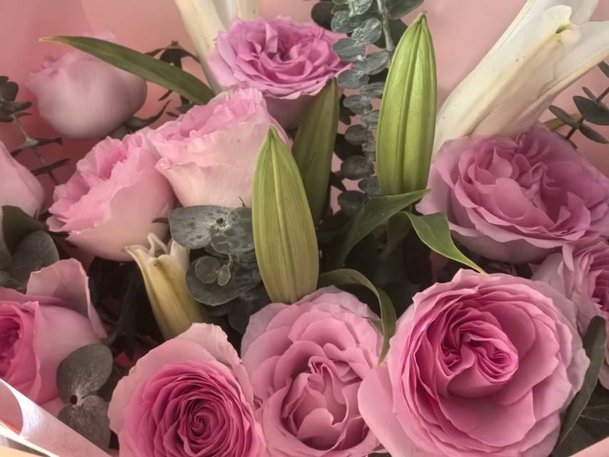 鲜花色泽艳丽,搭配的很温馨。