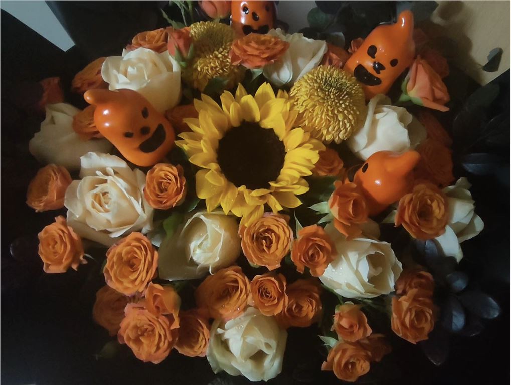 摆花造型有点小气,没有图片那么自然,玫瑰花不新鲜,花瓣有点蔫了。整体不是很满意