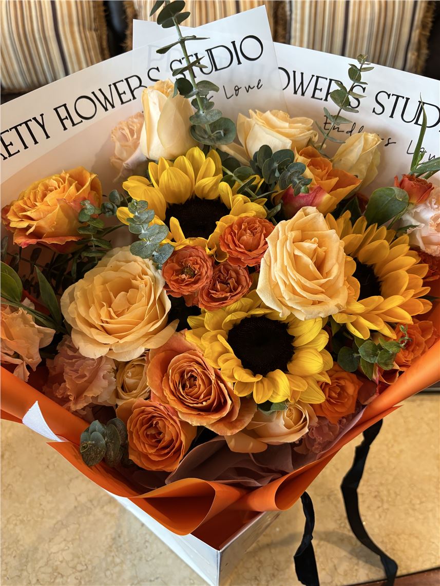 鲜花收到😉花朵新鲜,包装造型精美绝伦,非常漂亮,以后还会订购。一次非常愉快的订购体验!谢谢🙏