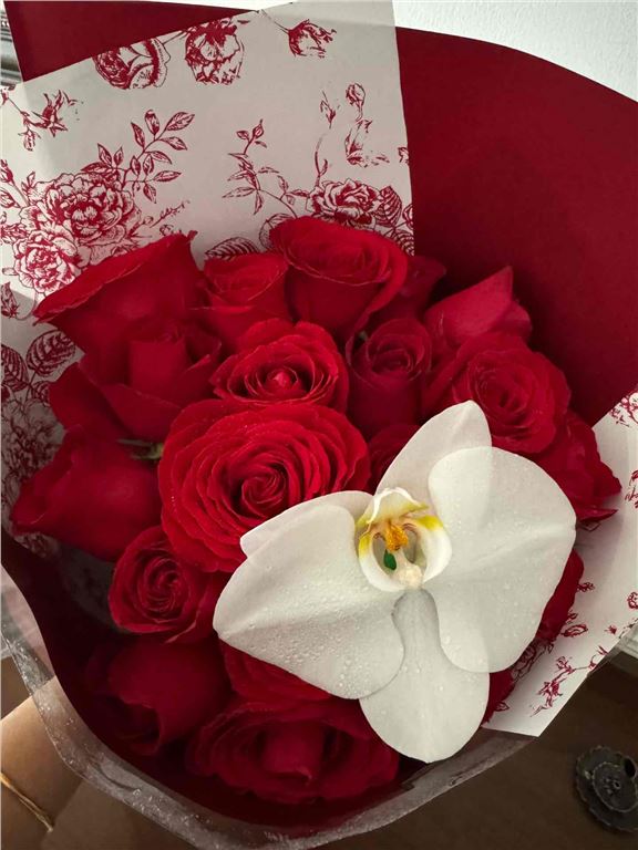 送给爸妈的乔迁花束,很大一束,很喜庆。