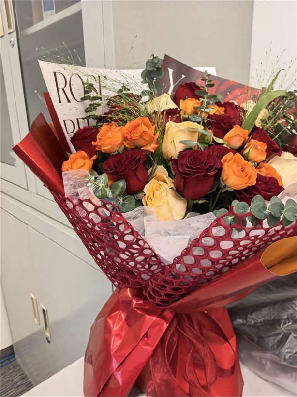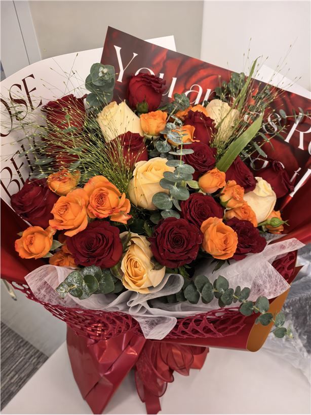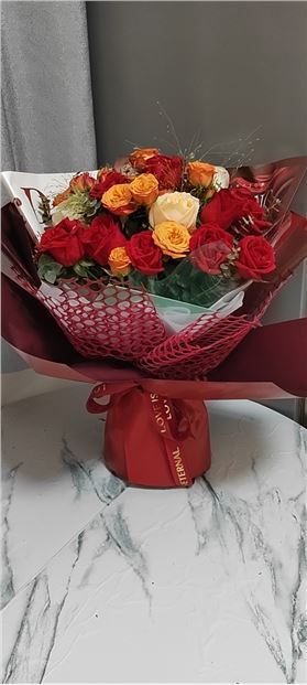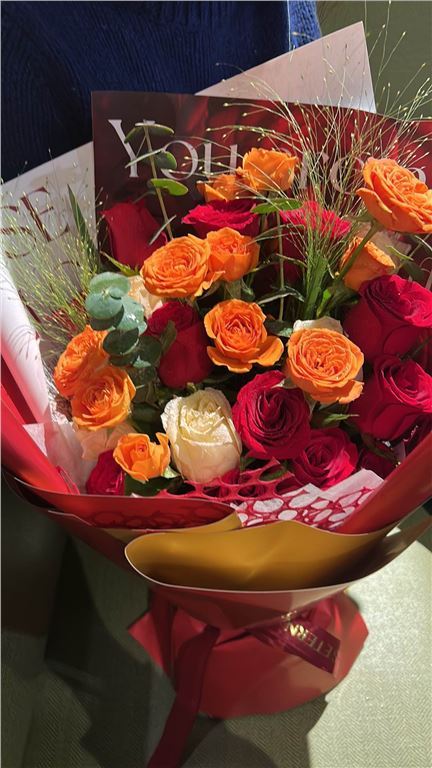 Красивый букет. Доставлено вовремя, все понравилось. Доставка вовремя и высокое качество продукции Выглядит хорошо! То же, что и на картинке! Цветы тоже очень свежие! Подсолнух прекрасен, розы тоже. Получательница была удивлена и довольна. Ей понравились цветы.!