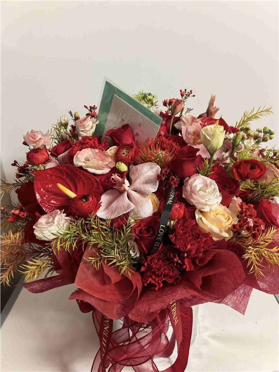 花是很好看的。但是送货的人送到其它地方去了,我爸妈不在家还好我爸再打电话给他叫他去拿回来再送去我家楼下。那个送货员还怪我没把地址写清楚。脑子有毛病吗?我用这个网站送我家已经超过五六年了。每次都是一样的地址。