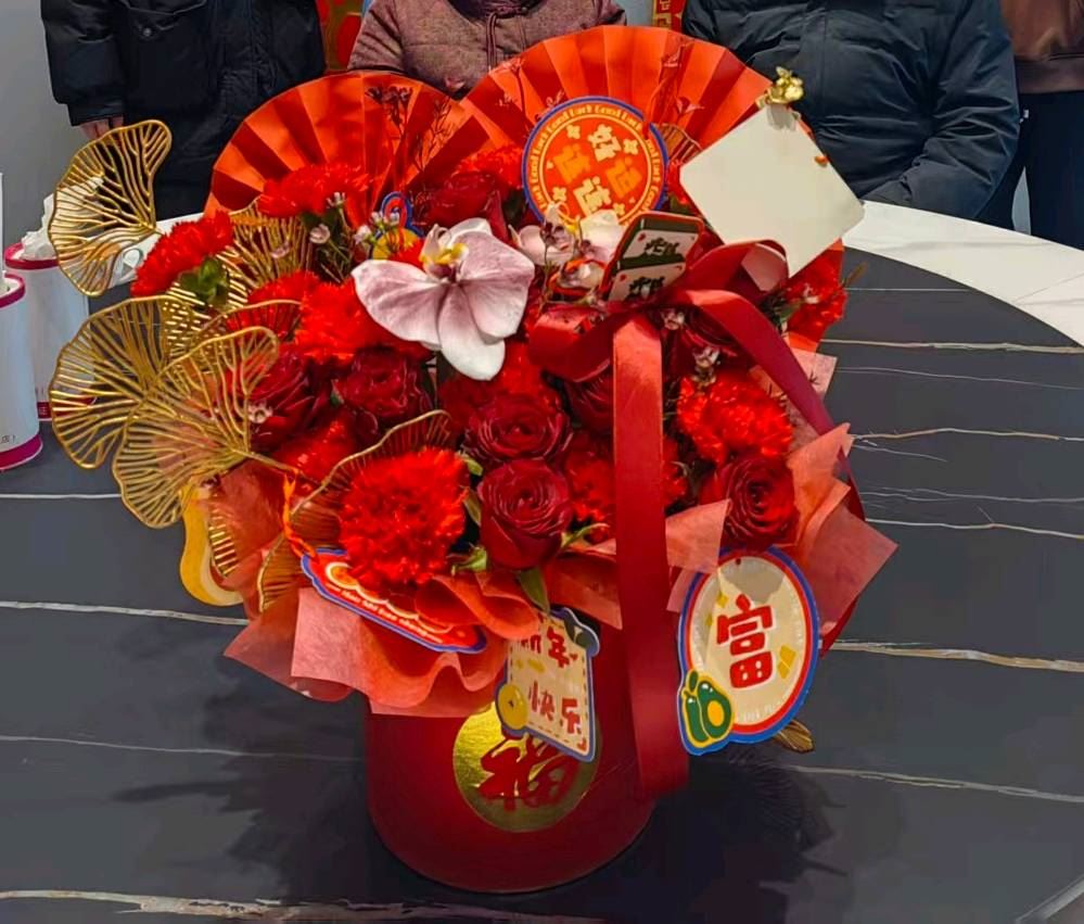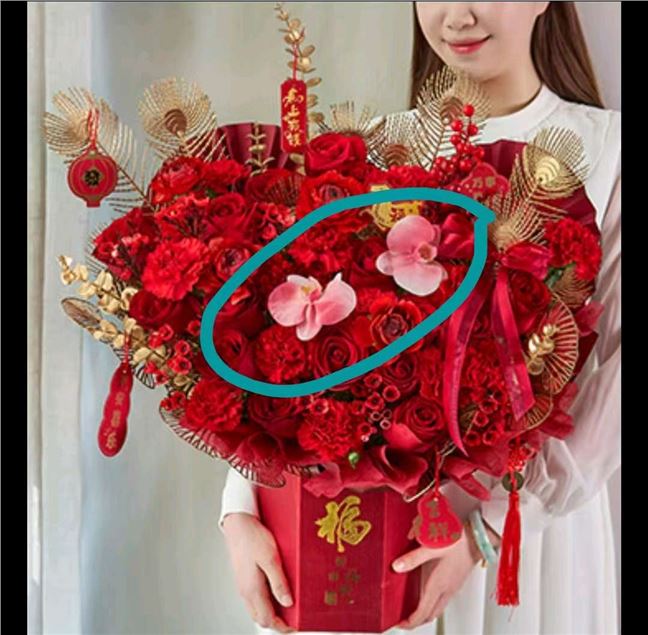 首先,客服服务态度不错,但收到的花非常不满意。14号订的花,因为临近春节了,客服来电说门店金色羽毛和没货了,羽毛换成金色尤加利叶,我同意了(有通话录音为证),想着也不会差哪去,结果呢,送来的花惨不忍睹,连宣传图片中应有的两朵蝴蝶兰都没了,整束花松松垮垮的看着都很小家子气,大家看看这值三百多的花吗