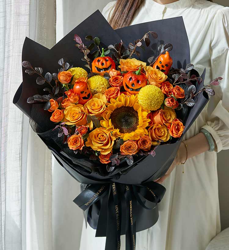 相比传统的糖果和装饰品,鲜花为万圣节增添了一份优雅与生机。一束精心搭配的万圣节主题花束,既能体现节日氛围,又彰显送礼人的独特品味。