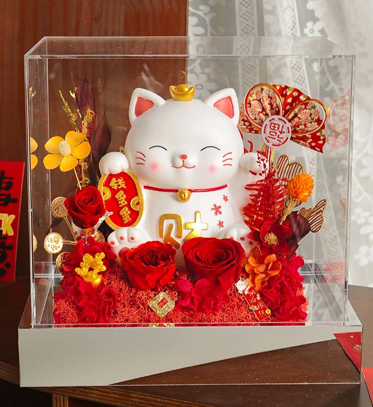 招财猫永生花亚克力礼盒