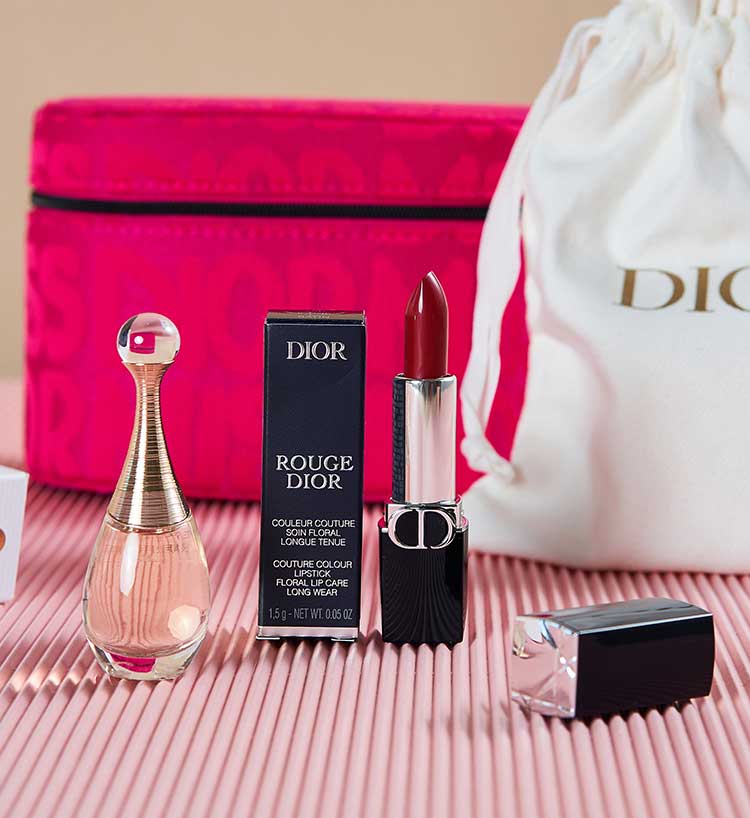 套装内含口红和香水及赠品化妆包