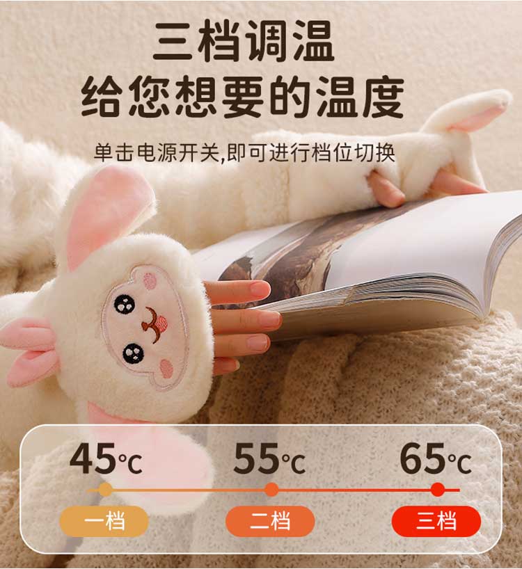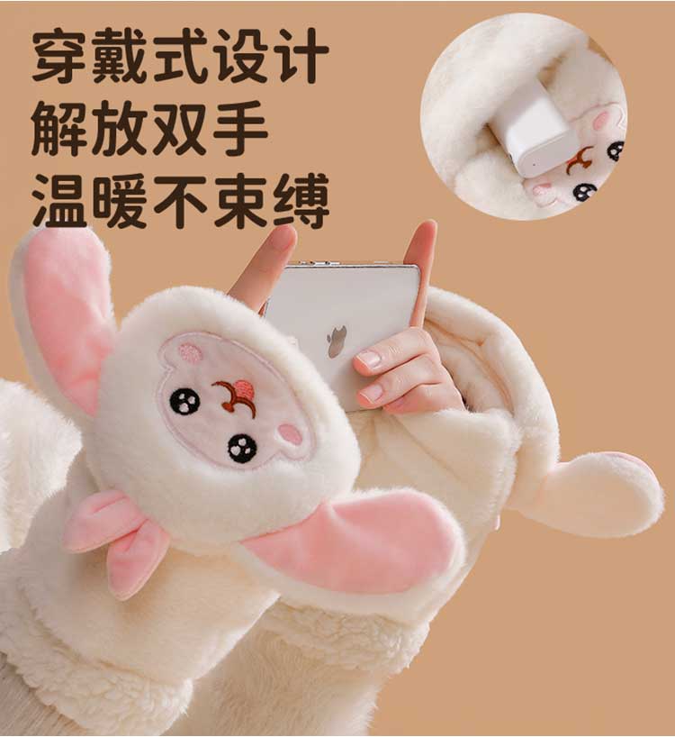 穿戴式羊羔绒发热手套,可爱女生保暖,冬季骑行神器
