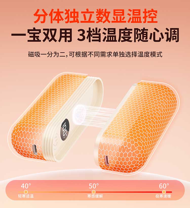 2025新款磁吸暖手宝分体式二合一随身暖手宝/粉色