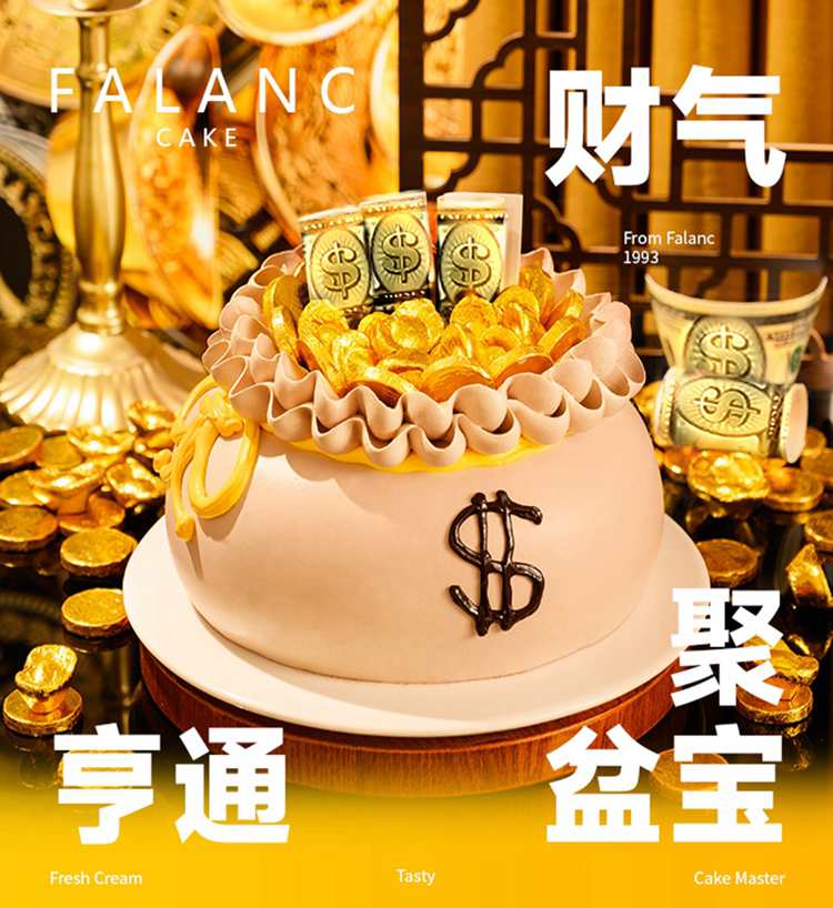 长辈祝寿钱袋聚宝盆生日蛋糕/10寸