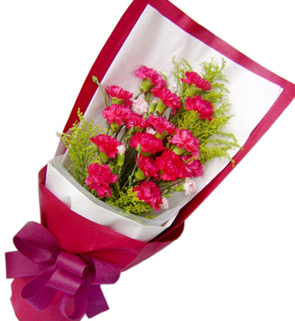 桃红色(或红色)康乃馨16枝,黄莺5枝