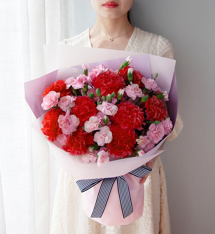 红色康乃馨9枝、粉色多头康乃馨10枝