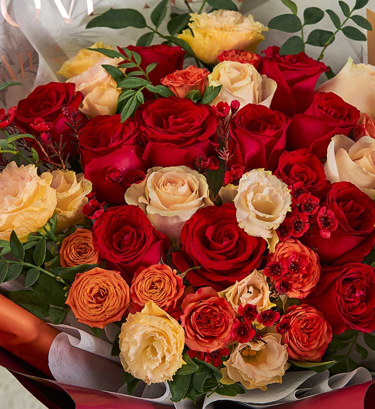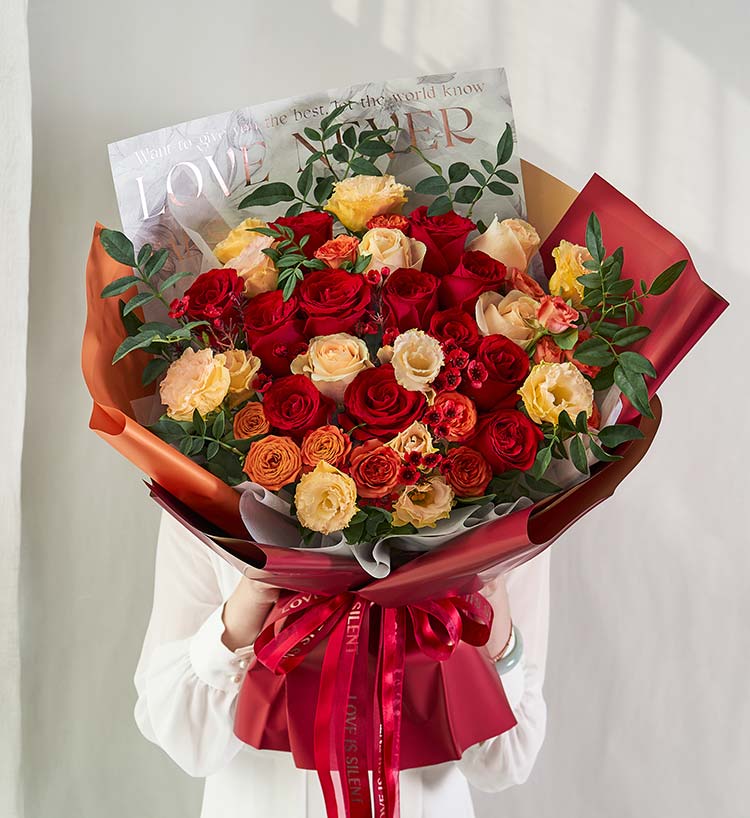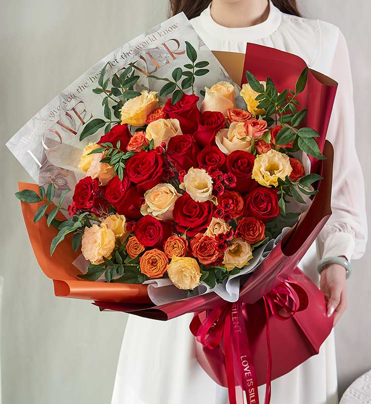 红玫瑰12枝+香槟玫瑰4枝,橙色多头玫瑰4枝
