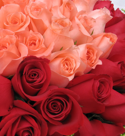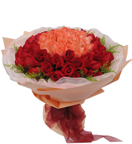 33枝粉玫瑰居中,66枝红玫瑰围绕