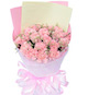 材 料:香槟玫瑰9枝、白百合2枝、粉色康乃馨13枝